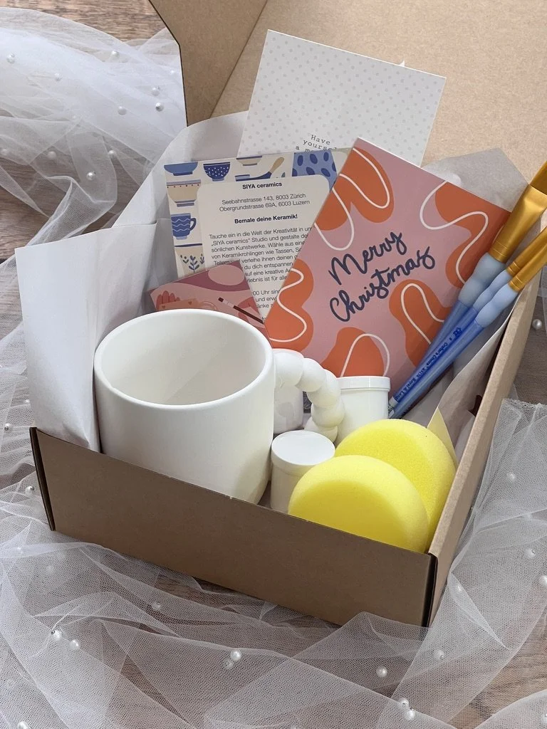 Suche Dir Deine Keramik und Farben im Shop oder vor Ort aus und wir bereiten Dir Deine liebevoll gestaltete Box direkt abholbereit für Dich vor.